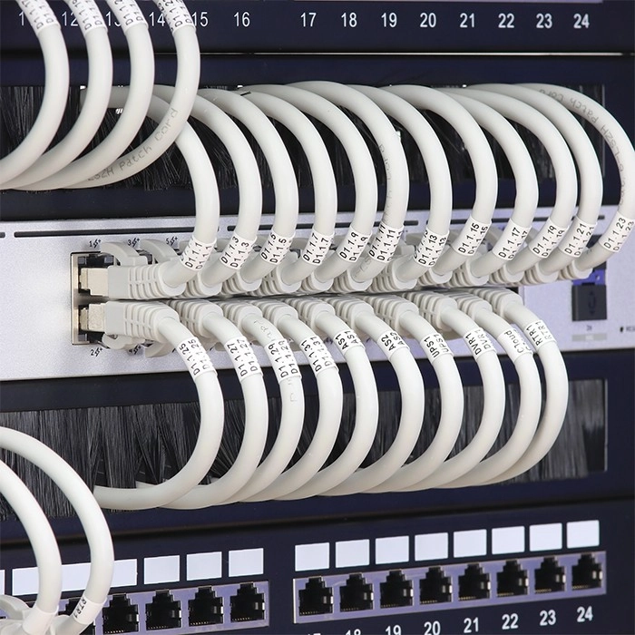 Pregledno označavanje i vođenje kabela pomaže bržem servisu i smanjuje zamjene portova. Četkasti prolaz ujedno ograničava prodor prašine.