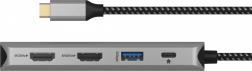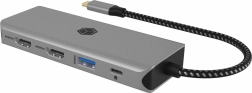 Ova višelučna dokna stanica pretvara jedan USB‑C priključak vašeg uređaja u univerzalno središte povezivanja. Podržava istodobno povezivanje dva monitora preko HDMI‑a s rezolucijom do 4K i glatkom stopom osvježavanja, brzi USB 3.0 za periferije i vanjske diskove te Gigabit LAN za stabilnu mrežu. Zahvaljujući prolaznom Power Delivery 100 W može napajati prijenosnik i druge uređaje.