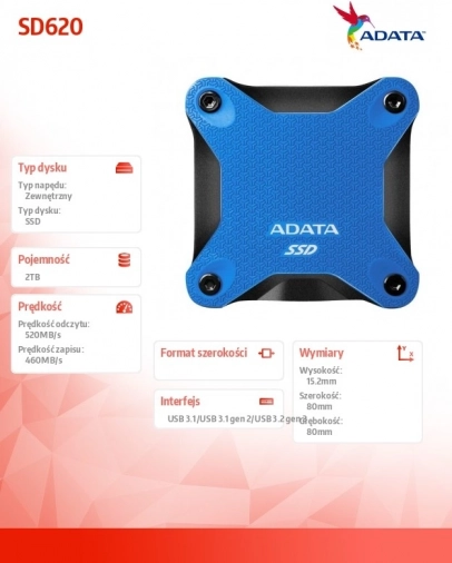 ADATA SD620 ističe se robusnim gumenim oklopom i protukliznom površinom koja štiti vaše podatke na putovanjima i na terenu. Sučelje USB 3.2 Gen2 osigurava agilno kopiranje filmova, fotografija i poslovnih projekata, pa je sigurnosno kopiranje pitanje trenutka.