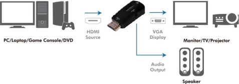 Pouzdan pretvarač s HDMI na VGA za povezivanje modernih uređaja na starije monitore i projektore. Podržava razlučivost do Full HD 1080p, a dio paketa je i 3,5 mm audio izlaz za prijenos zvuka.