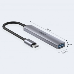Uređaj radi bez instalacije – samo ga priključite na USB‑C i spremni ste za rad. Metalno kućište je izdržljivo i elegantno, a kompaktne dimenzije (približno 8,8 × 1,6 × 0,8 cm) stanu u svaku torbu. Hub proširuje povezivost ne samo na računalu, već i na tabletu i pametnom telefonu, gdje lako stvarate prijenosno radno mjesto.