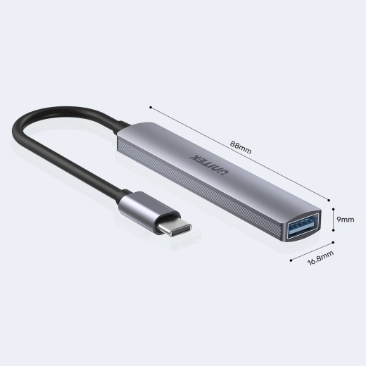 UNITEK USB‑C hub 4× USB‑A (1× 5 Gbps + 3× USB 2.0) aluminijski