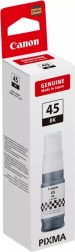 Canon GI-45BK je pigmentna crna tinta namijenjena za pisače Canon PIXMA s sustavom spremnika. Pruža duboku crnu, izvrsnu postojanost i otpornost na razmazivanje za svakodnevnu uredsku i kućnu upotrebu. Zahvaljujući visokom prinosu značajno smanjuje trošak po stranici i minimalizira učestalost dopunjavanja.