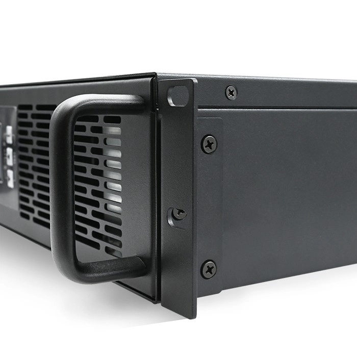 Integrirani LCD zaslon prikazuje ključne parametre i status UPS-a. Mala visina za 19" rack i robusna izvedba olakšavaju instalaciju i upravljanje.