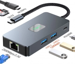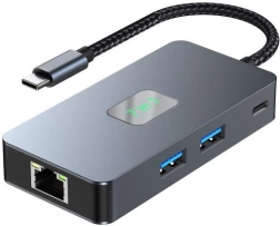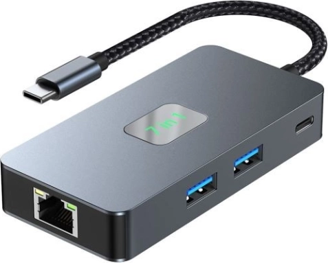 Multiportni adapter HUB USB‑C 7 u 1 proširuje mogućnosti vašeg prijenosnika bez potrebe za instalacijom softvera. Omogućuje spajanje pametnih telefona, projektora, tableta, miševa, tipkovnica i druge opreme. Glavni uređaj možete istovremeno puniti preko USB‑C porta.