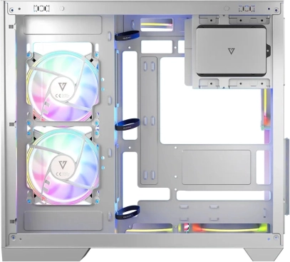 Bijelo kućište za računalo Volcano Panorama APEX ARGB 3F MIDI savršena je kombinacija estetike i funkcionalnosti. Sadrži do tri ARGB ventilatora za učinkovito hlađenje i stilsko pozadinsko osvjetljenje. Zahvaljujući dvama staklenim panelima možete izložiti svoje komponente u punom svjetlu.