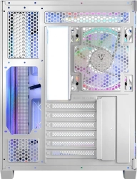 Prednja i bočna strana od kaljenog stakla omogućuju savršeno isticanje grafičke kartice, RAM‑a i hlađenja. Idealno za buildove s ARGB osvjetljenjem i pomno uređenim kabel‑managementom.
