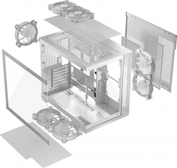 VOLCANO Panorama Apex ARGB dizajnirana je za svakoga tko želi svoje komponente ne samo zaštititi, već i izložiti. Prednja i bočna ploča od kaljenog stakla pružaju savršen pogled na grafičku karticu, RAM i hlađenje. Dvokomorno kućište s okomito montiranim napajanjem i urednim cable managementom podržava i matične ploče s obrnutim konektorima, pa će vaš sustav izgledati precizno iz svakog kuta.