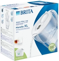 BRITA Marella XL osmišljena je za svakodnevnu udobnost. Veliki volumen 3,5 l (2,0 l filtrirane vode) pokrit će potrebe cijele obitelji, poklopac s preklopnom zaklopkom omogućuje punjenje jednom rukom, a vitko tijelo stane u vrata hladnjaka. Elektronički indikator BRITA Memo podsjeća na zamjenu filtera nakon 4 tjedna, pa imate sigurnost optimalne učinkovitosti.