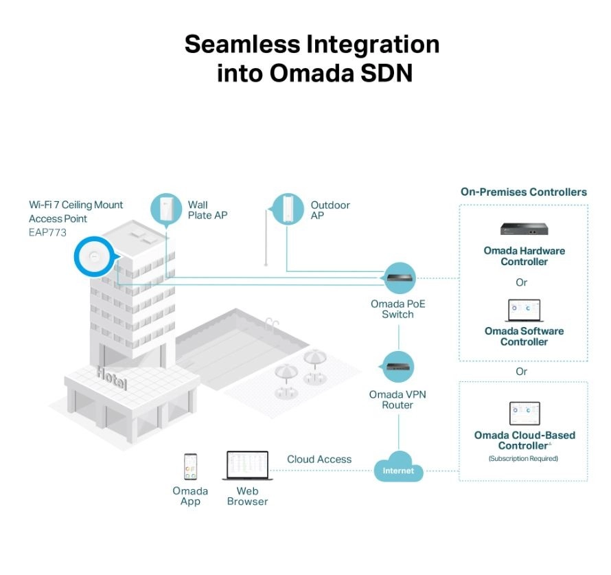 Uređaj podržava centralizirano upravljanje, mesh mrežu i napredne mogućnosti implementacije, pa lako proširite pokrivenost i zadržite jedinstveno upravljanje cjelokupnom infrastrukturom. Odličan izbor za urede, škole, hotele i maloprodaju.