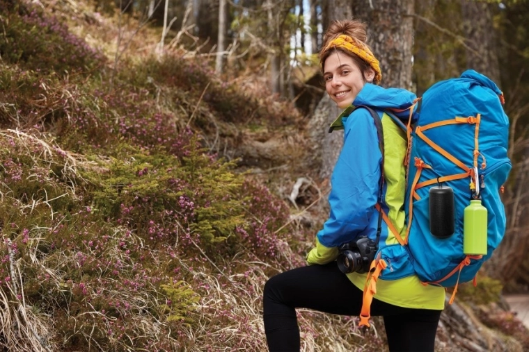 Kompaktan oblik i tekstilna omča olakšavaju nošenje i pričvršćivanje, primjerice na ruksak ili bicikl.