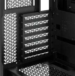 Kućište omogućuje učinkovito hlađenje zahvaljujući mogućnostima montaže ventilatora na bokovima, vrhu i području napajanja. Također podržava tekuće hlađenje s radijatorima od 360 mm.