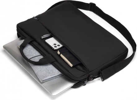 Elegantna futrola za 13–14,1" prijenosnike kombinira minimalistički izgled s maksimalnom zaštitom. Glavni pretinac opremljen je iznimno debelom podstavom koja štiti uređaj od udaraca i potresa. Zahvaljujući oblozi po obodu vaše je prijenosno računalo sigurno na putu do posla, škole ili na službenim putovanjima.