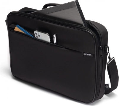 Traka za učvršćivanje osigurava stabilan položaj vašeg prijenosnika. Praktičan prednji džep nudi dovoljno prostora za mobilnu opremu kao što su pametni telefon, posjetnice i olovke. Podesiv i odvojiv rameni remen zajedno s udobnom ručkom čine torbu lako prenosivom.
