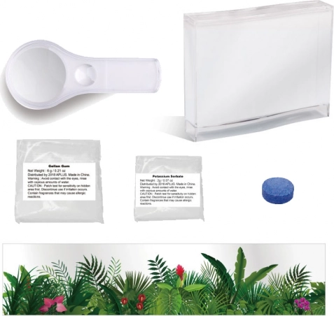Paket sadrži sve potrebno za početak vaše avanture: akvarij, hranjivi gel, lupu, naljepnicu s biljkama i upute. Preporučeno za djecu od 8 godina.