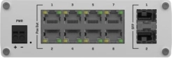Svaki od osam gigabitnih portova podržava IEEE 802.3af/at s snagom do 30 W po portu, što pojednostavljuje napajanje krajnjih uređaja jednim kabelom.