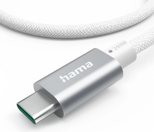 Univerzalni kabel Hama USB‑C/USB‑C s snagom do 240 W omogućuje munjevito punjenje telefona, tableta i prijenosnika. Podržava Power Delivery 3.1 (EPR) i Qualcomm Quick Charge 4.0+ za maksimalnu brzinu, prenosi podatke do 10 Gbit/s te je zahvaljujući pletenoj najlonskoj opletu i aluminijskim konektorima iznimno otporan na savijanje i zapetljavanje.
