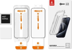 Kaljeno staklo EasyShield za iPhone 14 Pro donosi brzu i jednostavnu instalaciju zahvaljujući inovativnom alatu Press & Slide. Namjensko ljepilo bez prašine osigurava da ispod stakla ne ostane prašina.