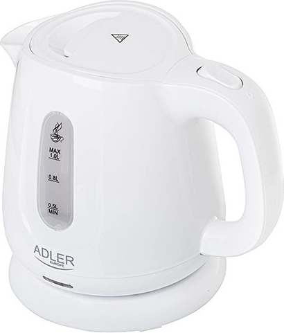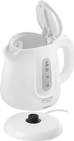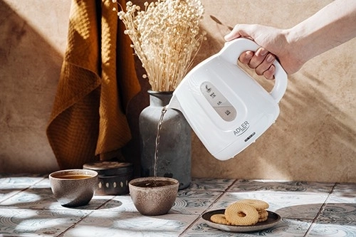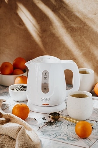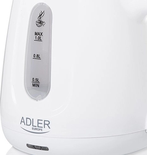 Kompaktno električno kuhalo za vodu ADLER zapremnine 1 l nudi brzo zagrijavanje zahvaljujući snazi od 850 W. Zahvaljujući automatskom isključivanju i zaštiti od rada na suho sigurno je za uporabu, filtar protiv kamenca poboljšava okus vode, a 360° rotirajuće postolje s pokazivačem razine povećava udobnost.