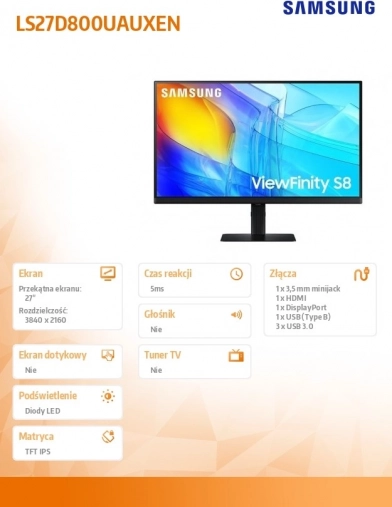 Samsung ViewFinity S80UD 27" 4K IPS monitor s USB‑C 90 W, LAN i KVM