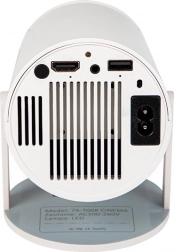 Projektor pruža mogućnost povezivanja putem HDMI i USB portova. Stabilno postavljanje je osigurano zahvaljujući podlozi, a ventilacija štiti uređaj od pregrijavanja.