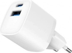 Ovaj univerzalni mrežni punjač kombinira priključke USB‑C i USB‑A, pa ćete jednostavno napuniti širok raspon uređaja – od pametnih telefona preko bežičnih slušalica do prijenosnih baterija. Snaga 20 W osigurava brzo dopunjavanje, a tehnologije USB Power Delivery i QC 3.0 jamče kompatibilnost s brzim punjenjem brojnih marki.