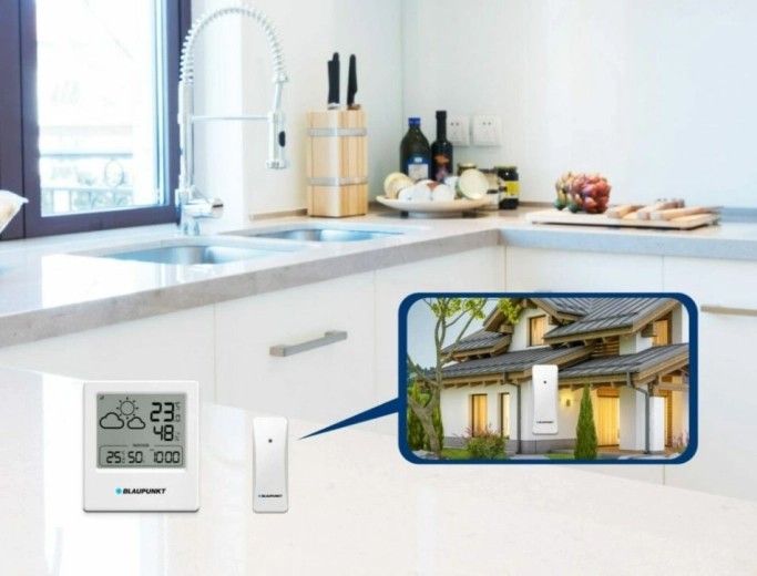 Stanicu možete postaviti ili objesiti zahvaljujući otvoru za kuku na stražnjoj strani. Napajanje na baterije (u pakiranju za stanicu i senzor) omogućuje postavljanje bilo gdje bez kabela. Vanjski senzor instalirajte u sjenu, zaštićen od kiše i vjetra, za što preciznije mjerenje. Integrirani 12/24-satni način rada sata upotpunjuje funkcionalnu opremu.