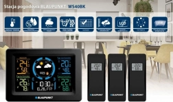 Pametna meteorološka stanica BLAUPUNKT WS40BK s kolor LCD zaslonom i do četiri istodobna mjerenja (1 ugrađeni + 3 bežična senzora) osigurat će da imate temperaturu, vlažnost, atmosferski tlak, trend vremena i faze Mjeseca uvijek na oku. Nudi precizne senzore, povijest min/max, 12/24-satni sat s kalendarom, alarm s funkcijom odgode (snooze) i zatamnjivo pozadinsko osvjetljenje. Napajanje je moguće iz mreže i iz baterija.