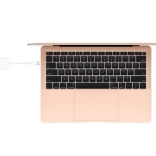 Zlatno prijenosno računalo s modernim dizajnom prikazuje kako adapter izgleda kada je spojen na stilski uređaj, naglašavajući njegovu estetsku vrijednost.