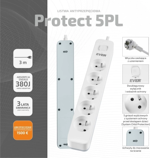 Letva PROTECT 5PL dizajnirana je za sigurno napajanje i učinkovitu prenaponsku zaštitu osjetljive elektronike. Zahvaljujući kvalitetnoj izradi i dugom dovodnom kabelu od 3 m, lako doseže tamo gdje vam je potrebna.