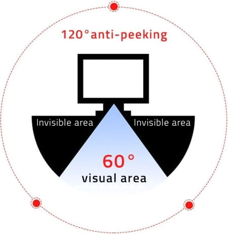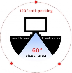 Uz korištenje napredne tehnologije mikrožaluzina osigurava čitljivost izravnog pogleda u rasponu od 60 stupnjeva, dok su bočni pogledi potpuno nečitljivi. Pri pogledu pod kutom od 30 stupnjeva slika se zatamnjuje, čime se jamči maksimalna privatnost.