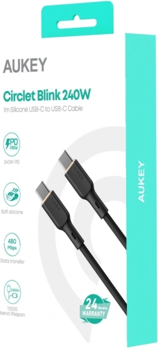 Silikonski kabel AUKEY donosi izvrsnu kvalitetu, trajnost i bezvremenski dizajn. Opremljen je tehnologijama Quick Charge i Power Delivery, podržava punjenje i prijenos podataka snagom do 240 W i 20 V. Silikonska površina pruža ugodan dodir i otpornost na oštećenja.