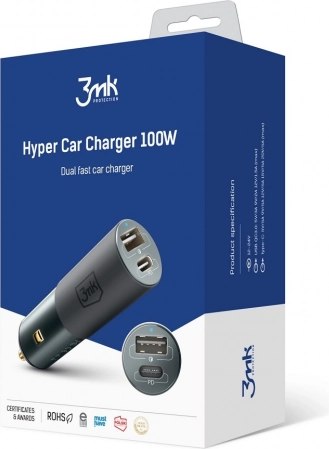 Superbrzo punjenje u vožnji s auto punjačem 3mk Hyper Car Charger 100W. Zahvaljujući Power Delivery do 100 W preko USB‑C i drugom priključku USB‑A udobno ćete istovremeno napuniti telefon i prijenosno računalo. Elegantna metalno‑plastična izrada, LED pozadinsko osvjetljenje za lako spajanje u mraku i zaštita od prenapona za sigurno punjenje svakog uređaja.