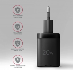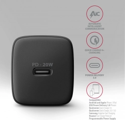 Univerzalni USB‑C punjač snage 20 W idealan je za moderne pametne telefone i tablete. Zahvaljujući protokolima Power Delivery 3.0, Quick Charge 4+, PPS, AFC i FCP osigurava maksimalno moguću brzinu punjenja za širok raspon uređaja uključujući Apple iPhone 12–15, iPad, Samsung i Huawei.