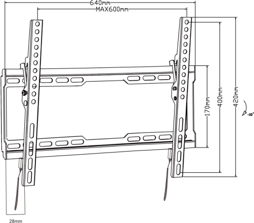 Univerzalni zidni nosač prikladan je za montažu televizora različitih marki, kao što su Sony, Samsung, LG ili Philips. Namijenjen je televizorima s VESA standardima od 100x200 mm do 600x400 mm, što osigurava široku kompatibilnost. Zahvaljujući mogućnosti nagiba, ovaj nosač jamči idealan kut gledanja, čime se maksimizira vaš doživljaj gledanja. U pakiranju se nalazi kvalitetna libela za preciznu instalaciju i montažni set koji olakšava i ubrzava postavljanje cijelog sustava.