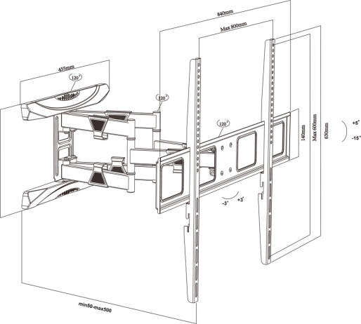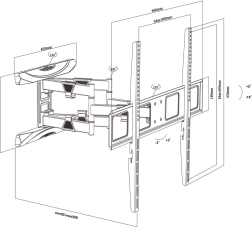 Univerzalni zidni nosač kompatibilan je s televizorima vodećih marki poput Sonyja, LG‑a, Samsunga, Philipsa, Sharpa, Panasonica i mnogih drugih. Dizajniran za LCD, LED i OLED televizore do 100 inča, pod uvjetom da zadovoljavaju VESA standard i ne prekoračuju maksimalnu težinu. Podrška za VESA standard: Nosač podržava različite dimenzije: 100x200, 200x200, 200x300 pa sve do 800x600 mm. Duga, dvostruka ruka omogućuje široke mogućnosti zakretanja zaslona te mogućnost niveliranja +3/‑3° nakon montaže.
