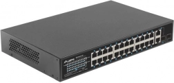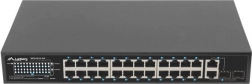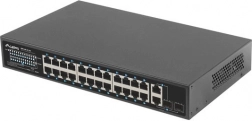24 PoE+ portova 10/100 Mb/s napajaju i prenose podatke jednim kabelom. Stvarni budžet od 250 W omogućuje istodobno napajanje do 16 uređaja 802.3af (15 W/port) ili 8 uređaja 802.3at (30 W/port).
