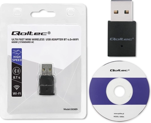 Mini bežični Wi‑Fi AC adapter s Bluetooth 4.0 QOLTEC, USB, do 600 Mb/s