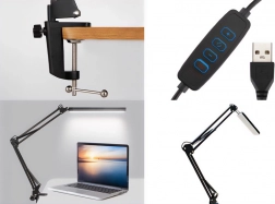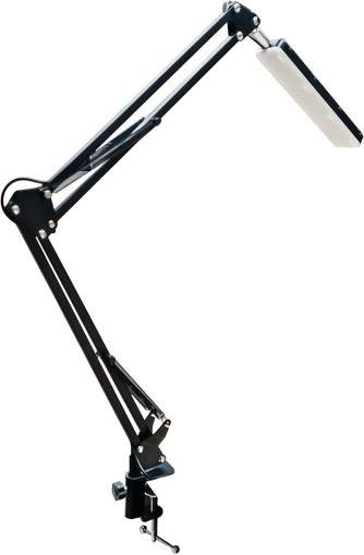 Zahvaljujući metalnoj stezaljci za ploče do 54 mm i dugačkom ramenu podesivom po visini i smjeru postižete precizno usmjeravanje svjetla bez zauzimanja mjesta na stolu. Upravljanje je jednostavno pomoću in-line upravljača na USB kabelu (130 cm). Napajanje 5 V / 1 A osigurava kompatibilnost s prijenosnikom, power bankom ili punjačem.