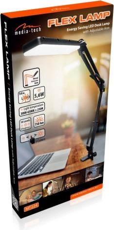 Tražite pouzdano i fleksibilno osvjetljenje za radni stol? LED lampa MEDIA-TECH Flex Lamp MT224 spaja štedljivost, učinkovitost i izvrsne mogućnosti podešavanja. Široka ploča s 56 LED SMD2835 pruža ravnomjerno svjetlo s odabirom temperature 3000–6500 K i deset razina svjetline, pa ćete uvijek postaviti idealne uvjete za čitanje, rad i odmor.