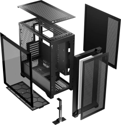 Za dobru cirkulaciju zraka zaduženi su kvadratni otvori na gornjem, prednjem i bočnom panelu. Kako bi se smanjio prodor prašine, prednji panel opremljen je prašinskim filtrom. Budući da su paneli pričvršćeni pomoću klik-nosača, čišćenje filtara je vrlo jednostavno.