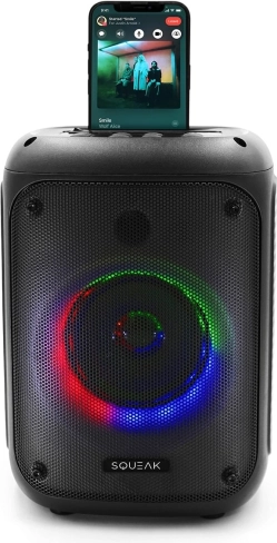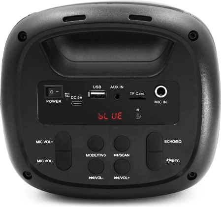Zvučnik je dizajniran za čist i snažan zvuk u kompaktnom kućištu. Integrirana ručka olakšava prenošenje, a šareno LED osvjetljenje svakoj pjesmi daje party atmosferu. Zahvaljujući stabilnoj vezi Bluetooth 5.0 + EDR lako strujite glazbu s telefona ili tableta bez prekida.