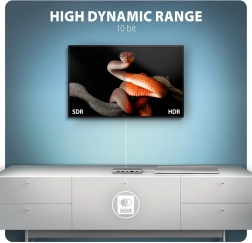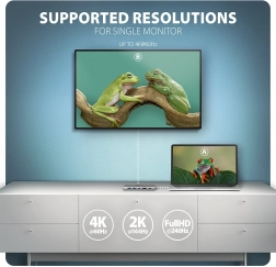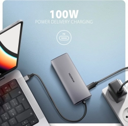 Tehnologija Power Delivery omogućuje punjenje prijenosnika do 100 W. HDMI izlaz nudi rezoluciju do 4K/60Hz, podršku za HDR i visokofrekventne načine za igre poput 2K/120Hz ili FullHD/240Hz. Ne zaboravite da vaš prijenosnik mora podržavati DisplayPort način (DP Alt Mode) ili imati Thunderbolt 3, 4 ili noviji priključak za ispravan rad video izlaza.