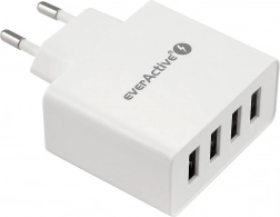 EverActive SC-400 je robustan mrežni punjač s četiri USB priključka i tehnologijom iQ Smart Charging. Odličan je svugdje gdje je broj mrežnih utičnica znatno ograničen i gdje nije moguće koristiti uobičajeni jednoutični mrežni punjač za istodobno punjenje više uređaja.