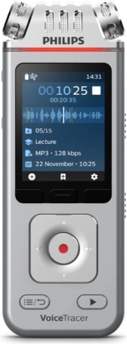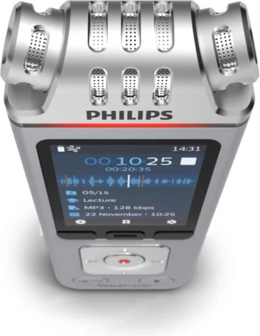 PHILIPS VoiceTracer pouzdan je digitalni diktafon za studente, novinare i profesionalce. Trio mikrofona s visokim omjerom signal/šum pruža čist, prirodan stereo zvuk bez šumova prianjanja. Snimanje u stereo MP3 ili bezgubitnom PCM (WAV) donosi izvrsnu kvalitetu i jednostavno dijeljenje.