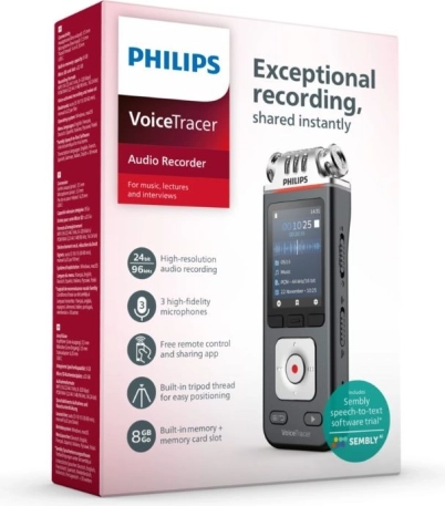 PHILIPS VoiceTracer DVT6115 je pametni diktafon osmišljen za čiste i prirodne snimke u svakoj situaciji. Trojka visokovjernih mikrofona s visokim omjerom signal‑šum, kvalitetnim ovjesom i izraženim razdvajanjem kanala bilježi detaljan stereo zvuk koji zvuči kao uživo. Snimate u univerzalni MP3 ili nekomprimirani PCM (WAV) u kvaliteti bliskoj CD‑u, a zahvaljujući aplikaciji Philips VoiceTracer snimanjem možete udobno upravljati na daljinu.