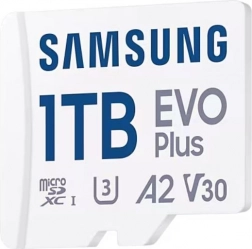 Proširite pohranu svog telefona, fotoaparata ili konzole uz microSD karticu SAMSUNG EVO Plus 1 TB s brzinom čitanja do 160 MB/s, klasama U3, A2 i V30 za glatki 4K video i brzo pokretanje aplikacija. Nudi široku kompatibilnost, izdržljivost 6-u-1 protiv vode, temperatura, rendgenskih zraka, magneta, padova i trošenja, a u pakiranju je i punokrvni SD adapter.