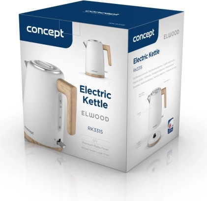Otkrijte ljepotu i funkcionalnost u jednom. Kuhalo CONCEPT ELWOOD u bijeloj boji s drvenim akcentima savršeno se uklapa u modernu i tradicionalnu kuhinju. Zahvaljujući volumenu od 1,7 l brzo ćete pripremiti vodu za cijelu obitelj, dok skriveni grijaći element olakšava čišćenje i smanjuje stvaranje kamenca.