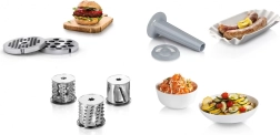 Ne samo da melje meso, već ovaj mlinac također može rezati i ribati razne sastojke, kao što su povrće i voće. Zbog toga je idealan pomoćnik za pripremu jela, kao što su popečci od krumpira ili sočni hamburgeri.