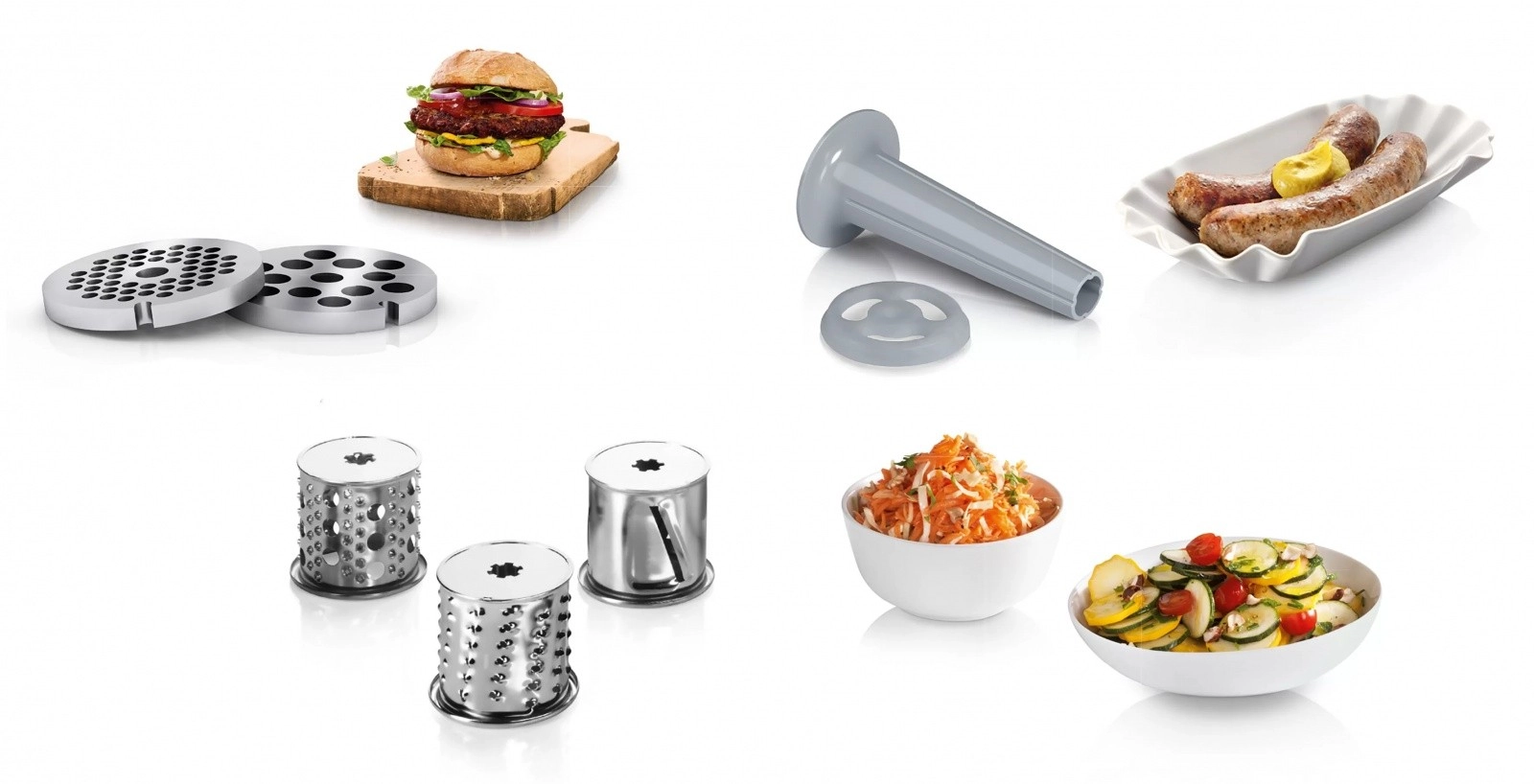 Osim mljevenja mesa, možete pomoću mlinca ribati i rezati razne sastojke, kao što su povrće, sirevi, voće ili čokolada.